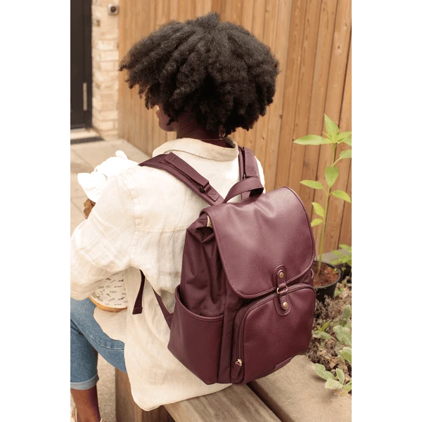 De rugzak is gemaakt van hoogwaardig veganistisch leer en duurzaam polyester.