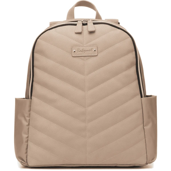 - Voorkant van veganistisch leer met chevronpatroon dat deze luiertas een modern en look geeft.