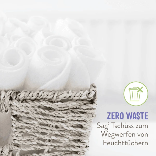 Vergeet het weggooien van natte doekjes en gebruik deze zachte doekjes om handen, gezicht en billen zachtjes te reinigen.