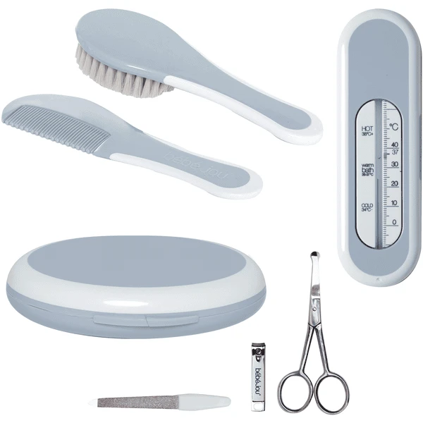 bébé-jou ® biedt een zeer compleet en kwalitatief hoogstaand assortiment verzorgingsproducten. Alleen het beste is goed genoeg voor je baby! De manicureset bestaat uit een nagelschaartje, een nagelpincet en een nagelvijl in een bijpassend etui. De kam met afgeronde tanden en de borstel met natuurlijke borstelharen zijn babyvriendelijk. Perfect voor de gevoelige babyhuid.