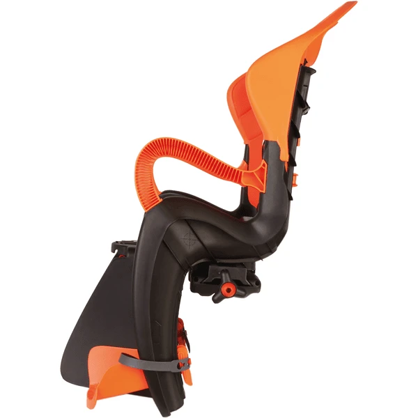 Het fietsstoeltje met dragerhouder heeft een ergonomische en in hoogte verstelbare rugleuning die zich aanpast aan de groei van uw kind. De schuine rugleuning met helmbehuizing biedt een betere ondersteuning voor de nek van het kind.