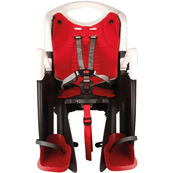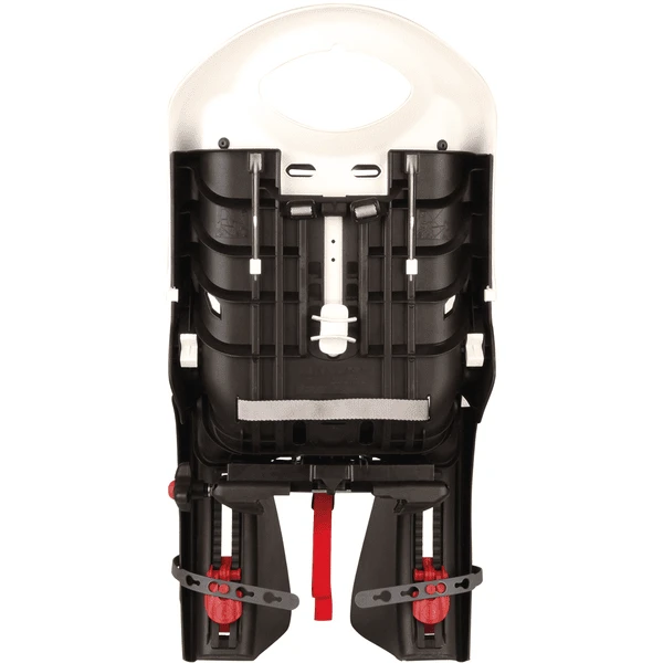 Het fietsstoeltje met dragerhouder heeft een ergonomische en in hoogte verstelbare rugleuning die zich aanpast aan de groei van uw kind. De schuine rugleuning met helmbehuizing biedt een betere ondersteuning voor de nek van het kind.