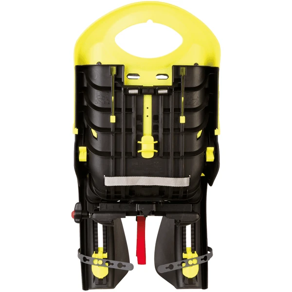 Het fietsstoeltje met dragerhouder heeft een ergonomische en in hoogte verstelbare rugleuning die zich aanpast aan de groei van uw kind. De schuine rugleuning met helmbehuizing biedt een betere ondersteuning voor de nek van het kind.