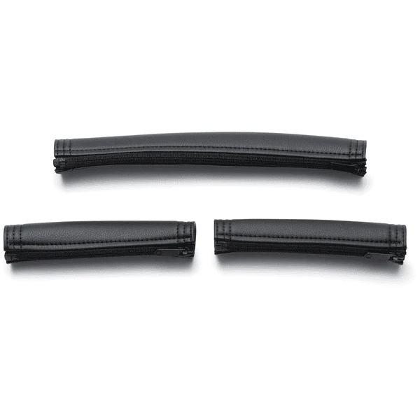 De bugaboo upgrade-set bevat lederlook-hoezen die met ritssluiting aan de duwstang en draagbeugel bevestigd kunnen worden, nadat de schuimstof verwijderd is.