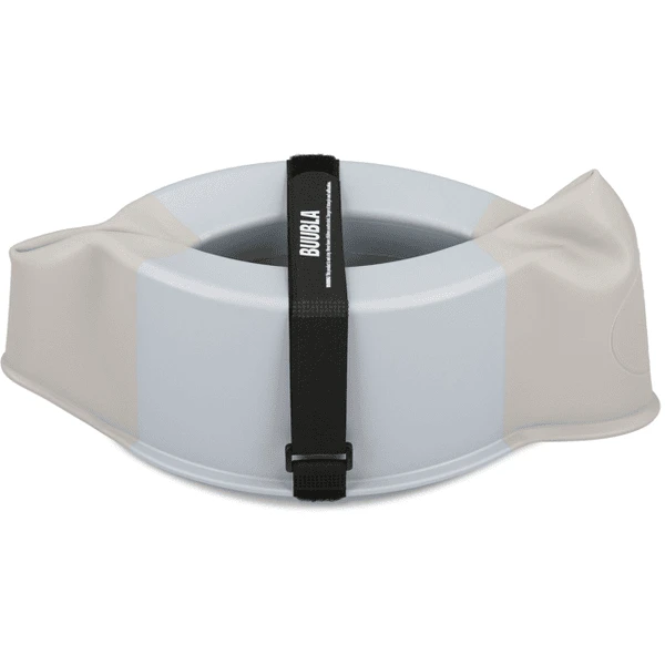 - Het Buubla Travel Potty kan met of zonder de praktische riem (inbegrepen) worden opgevouwen en opgeborgen in de Buubla Travel Potty tas.