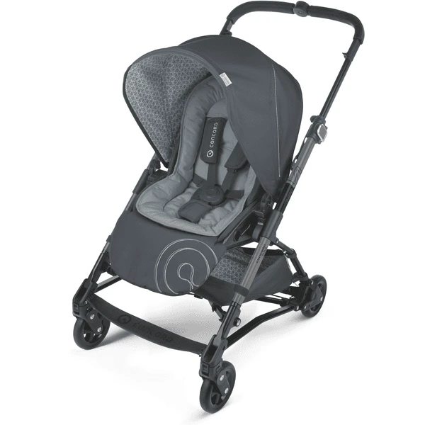 De Concord Soul kinderwagen is uitgerust met een kap, boodschappenmand en regenhoes.