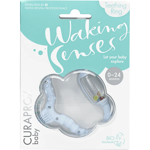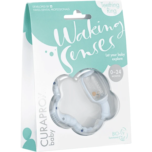Bijt erin, en de pijn verdwijnt. Pijnstillende zalfjes zijn niet nodig. Ontwikkeld door Dr. med. dent. Nadja-Marina Kellerhoff, de CURAPROX bijtring voor baby’s is eigenlijk een avonturenspeelplaats – en een leren tandenborstel. Er zijn veel opwindende oppervlakken om te voelen, en de rammelaar rammelt. Voor opvoeders betekent dit: zintuiglijke motoriek. Voor uw kind: avontuur!
