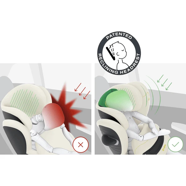 - Drievoudige kantelbare hoofdsteun voorkomt dat het hoofd van uw kind naar voren kantelt tijdens het slapen
