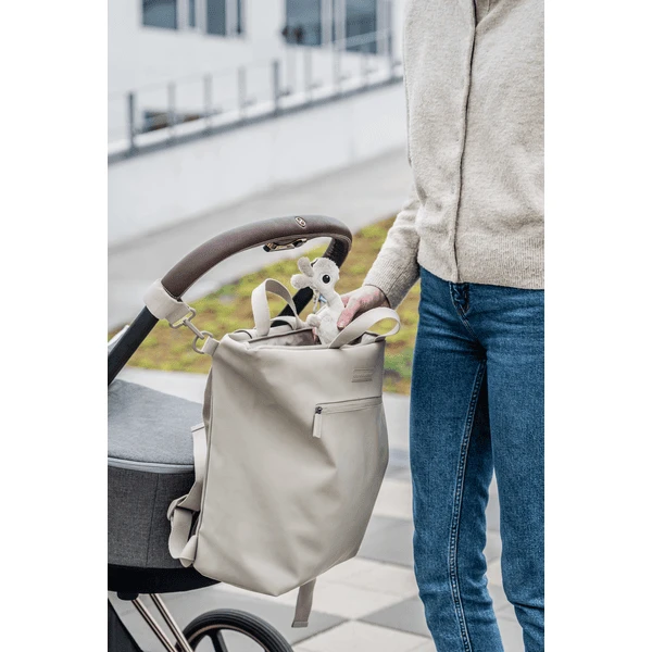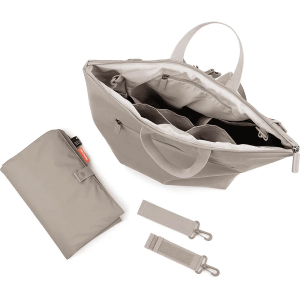- De ruime luiertas combineert functionaliteit, tijdloze Design en duurzaamheid. Het buitenmateriaal en de voering zijn gemaakt van 38 gerecycleerde PET-flessen.