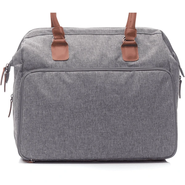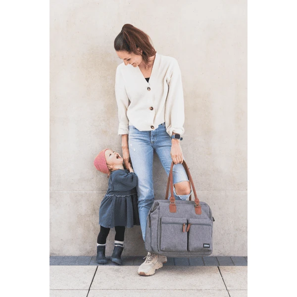 - De luiertas is gemaakt van robuust polyester met veganistische lederen handvatten.