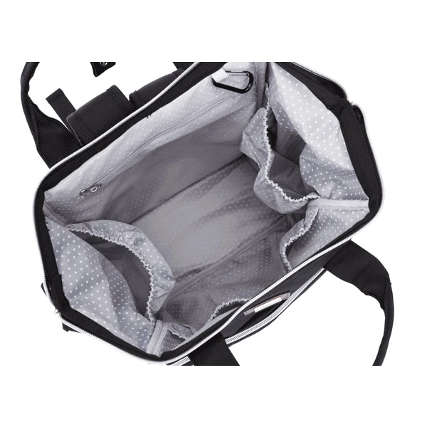 Uitgerust met veel binnen- en buitenvakken biedt de rugzak veel opbergruimte. Sportief over de schouders gedragen of gewoon op de kinderwagen gemonteerd – de rugzak is net zo flexibel als jezelf.