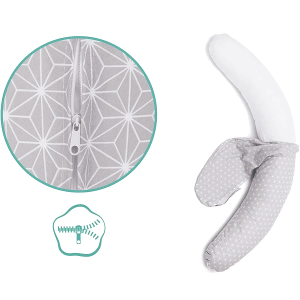 Wanneer uw kleine zonnestraaltje geboren is, kunt u het kussen gebruiken als borstvoedingskussen om u en uw ergonomische houding te ondersteunen tijdens de borstvoeding. Er is extra zorg besteed aan voldoende vulling om een stabiel, stevig lichaam te creëren dat de beste ondersteuning biedt. Om het borstvoedingskussen tijdens de borstvoeding op zijn plaats te houden, kunt u het met de praktische klittenbandsluiting bevestigen. Als de klittenbandsluiting niet nodig is, kan het gemakkelijk aan de bijpassende tegenhanger worden bevestigd en stoort het u niet tijdens het slapen en knuffelen.