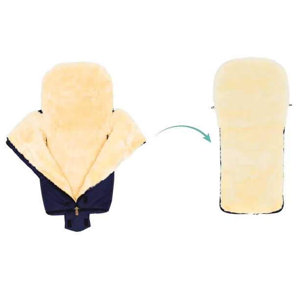 - Dankzij de gordelsleuven aan de achterkant kunt u de voetenzak gemakkelijk bevestigen aan alle standaard kinderwagens en buggy’s