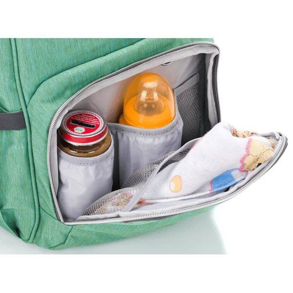 Dankzij de vele binnen- en buitencompartimenten blijkt de wrap-around rugzak een echt opbergwonder te zijn. De zakopening van de dokter maakt het gemakkelijk om de inhoud op te bergen, zodat u de inhoud in één oogopslag kunt zien en u zich het gedoe van het zoeken kunt besparen. Of u hem nu sportief over uw schouder draagt of gewoon op de kinderwagen monteert – de rugzak past zich flexibel aan uw wensen aan. Voor de bevestiging aan de kinderwagen worden twee haken meegeleverd. Een uitneembare aankleedkussen is ook inbegrepen. Dit maakt het verschonen van luiers onderweg kinderspel, want het opvouwbare verschoonmatje is altijd klaar voor gebruik.