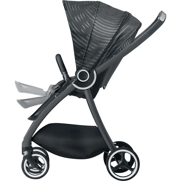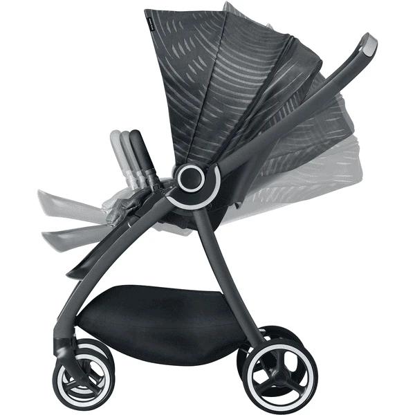 Het ontwerp van de centrale vouwkoppeling dient niet alleen als een bijzonder elegant element, maar maakt het ook gemakkelijk om verschillende opzetstukken aan en af te klikken, afhankelijk van de voorkeur en leeftijd van het kind: als ruime, compacte kinderwagen, als reissysteem met een bijpassend kinderzitje en met een comfortabele zitgroep.