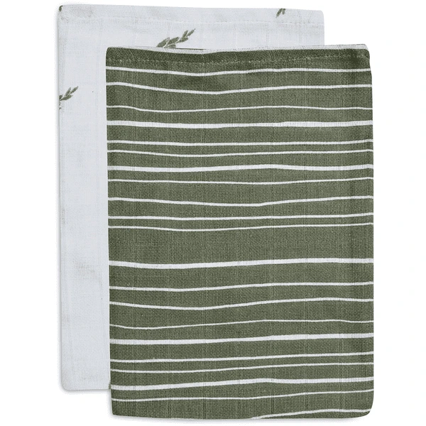 jollein Flanellen mousseline 2-pack Stripe Olive Blad Green
