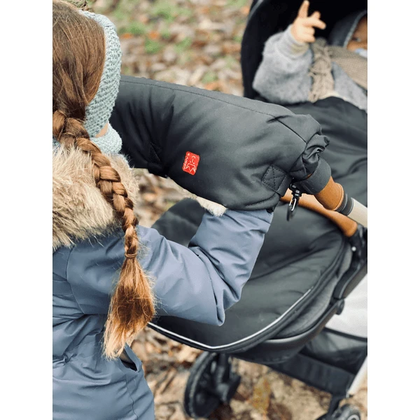 Echte lamsvacht en maximale ruimte zorgen voor warme handen van papa en mama.