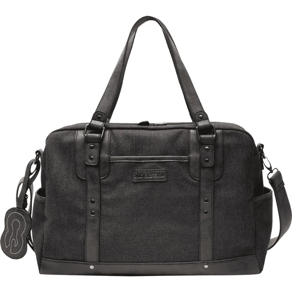 De Nenne luiertas is zeer aantrekkelijk afgewerkt in canvas en met kunstleren accenten. Het heeft een grote, praktische treklus en een groot vak met ritssluiting aan de achterkant.