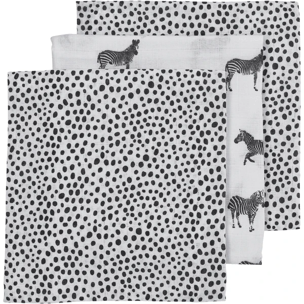 Meyco Gaasluiers 3-Pack Zebra Dier / Cheetah 70 x 70 cm