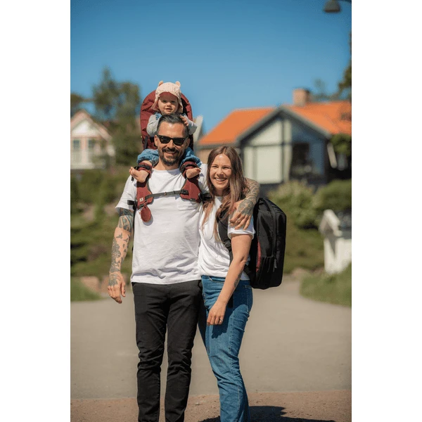 Ouders wordt comfort geboden door het kind op een speciaal ontworpen zitje te plaatsen dat net boven de schouders zweeft, waardoor nek en schouders worden ontlast van directe belasting. Het gewicht van het kind wordt gelijkmatig verdeeld over de romp van de drager, waardoor langere wandelingen in comfort en stijl met blije kinderen mogelijk zijn.