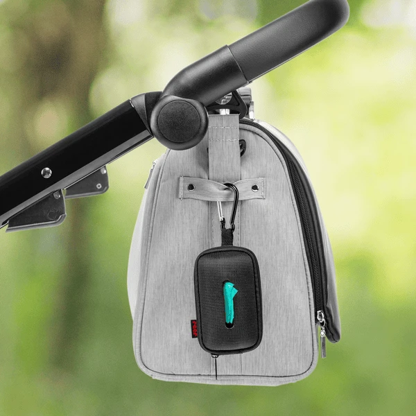 De dispenser is ook uitgerust met een stevige Metal l karabijnhaak. Dit maakt het nog handiger om onderweg te gebruiken. Gewoon aan je luiertas vastklikken en de dispenser is altijd bij de hand – zonder gedoe met rommelen in je tas.