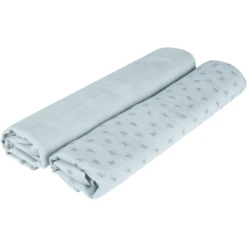 De set van 2 puck- en verpleegsjaals uit de Planet Lil-collectie in turkoois is veelzijdig. Voor borst- of flesvoeding of ook als babydeken.