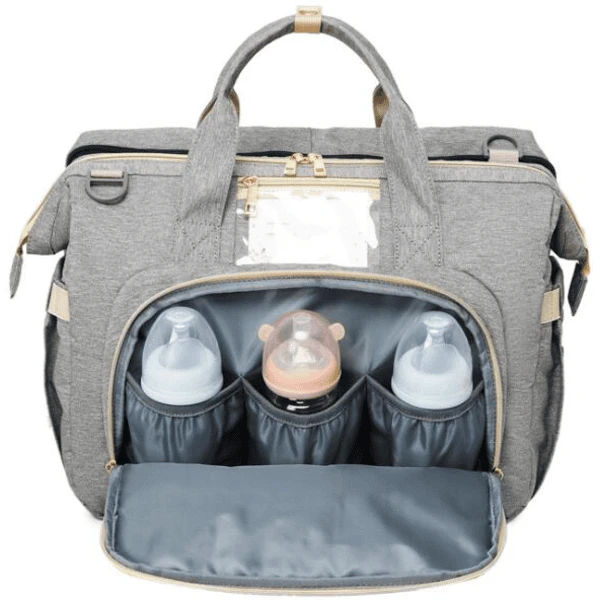 De tas kan in een handomdraai worden omgebouwd tot een comfortabel en veilig babybedje, inclusief een USB-aansluiting. *