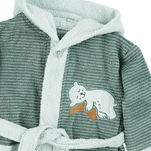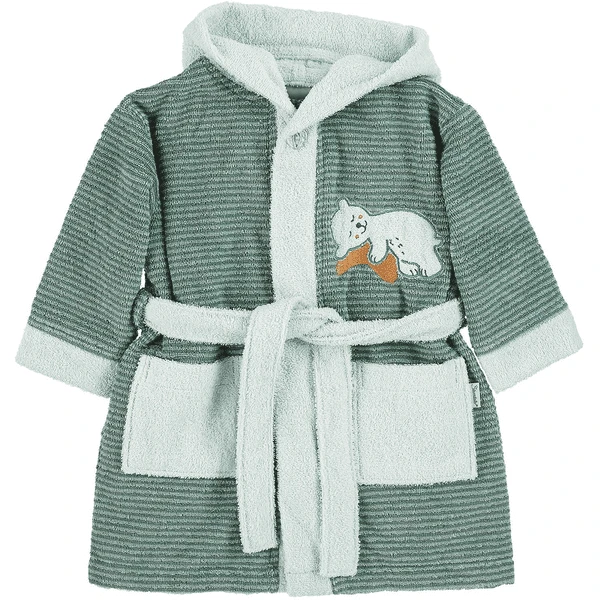 Mooie badjas met capuchon van zachte badstof met geappliqueerd borduurmotief Bear Ben, die zorgt voor het knuffeluurtje na de B aden .