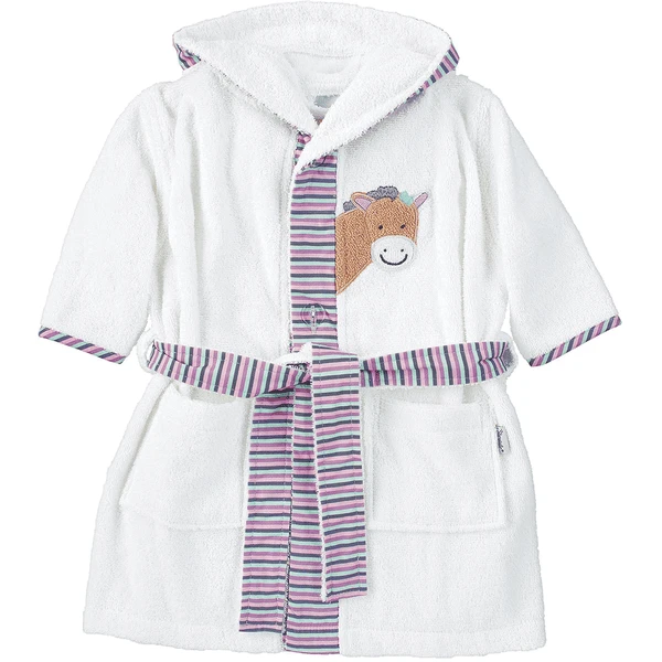 Mooie badjas met capuchon van zachte badstof met aangebracht borduurmotief Pony Pauline, die zorgt voor de knuffeluur na de B aden .