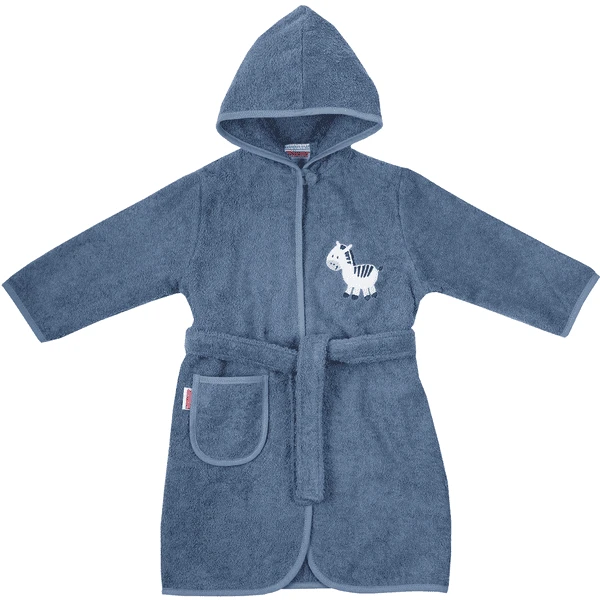 Zachte badjas met capuchon, zakje, knoop in de nek en riem De badjas heeft een zebra-borduursel aan de voorzijde.