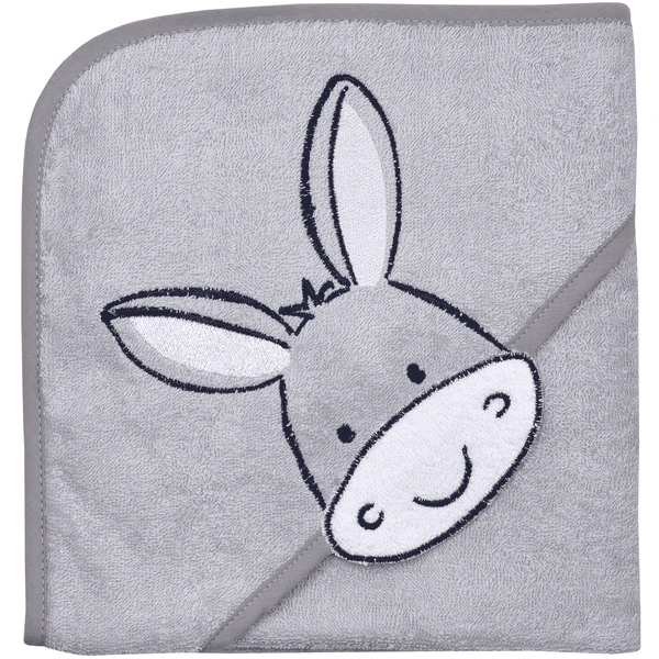 Geweldige badhanddoek met kap, gemaakt van pluizige badstof met ezelsborduurwerk.