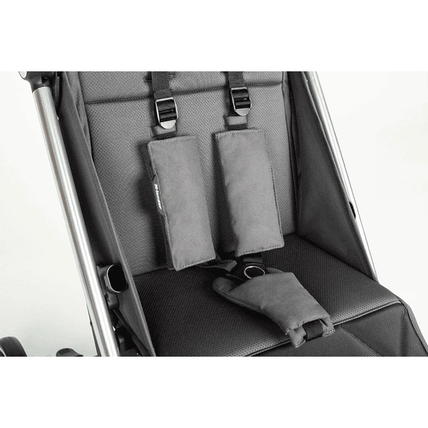 Voor een maximale bescherming van u en uw kind zorgen de reflectoren op de zonnekap, de mand en de wielen voor een betere zichtbaarheid in het donker. Dankzij de reflectoren is de kinderwagen ook na zonsondergang nog zichtbaar. Dit is een groot voordeel, vooral bij het lopen op slecht verlichte paden. Om ervoor te zorgen dat uw kind op elk terrein een stabiele houvast heeft, bestaat het riemsysteem uit een gesp met 3 verankeringspunten voor de schouders en het kruis. De riemen kunnen in maat worden versteld en de gordelbeschermers beschermen de gevoelige huid van het kind tegen schaafwonden.